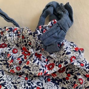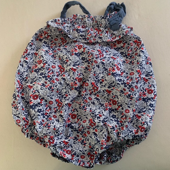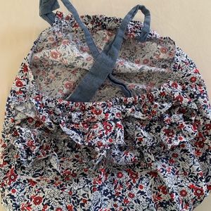 Beautiful Gap romper. 3 button snaps. Crisscross back. Ruffles in front and back. Worn only twice. Pet-free smoke free home.