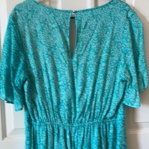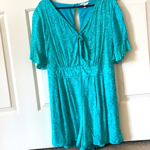 Beautiful flawless bluish/greenish romper. Very soft, lightweight comfy material for summer. It has a inner lining as well. Gently used no more than one time, excellent condition. Length from top to bottom is approximately 33 inches long.
