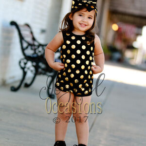 Rompers For Baby and Toddler Girls Romper Onepiece Bodysuit Black and Gold