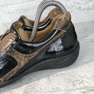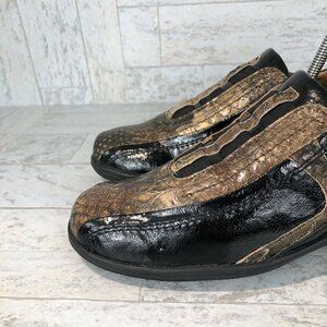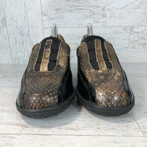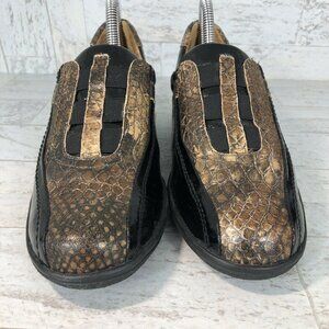 Romus Comfort Shoes WOMENS Size 37 Made In Spain Black Gold Snake Print Slip On.
