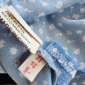 Romwe Blue & White Floral Ditzy Tie Front Peplum Top (L)