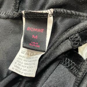 The Romwe Camisole in black velvet and lace is a sexy and gothic top featuring a metal cross detail. This size medium camisole is designed for women and showcases a stylish and edgy look. The lace fabric adds a touch of elegance, while the metal cross detail gives it a unique and bold charm. Perfect for those looking to make a statement with their fashion choices.