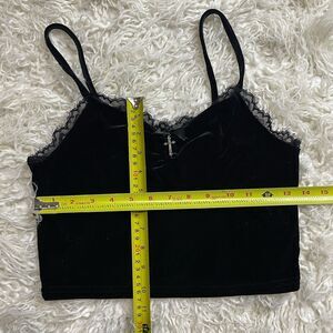 Romwe Camisole Black Velvet And Lace Sexy Goth With Metal Cross Size Medium