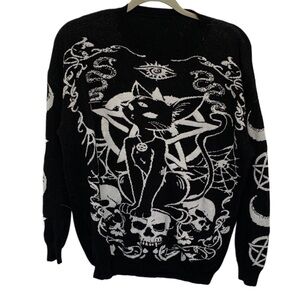 Romwe Cat Skulls Witchy Goth Black Pullover Sweater