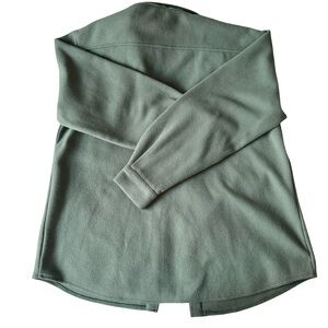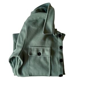 Stay cozy and comfortable with this chic green button-up shacket. Perfect for layering, it features a classic design with front pockets and buttoned cuffs.