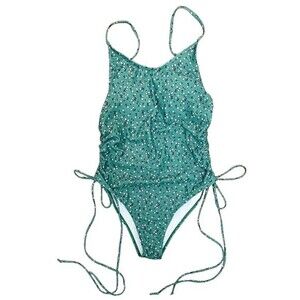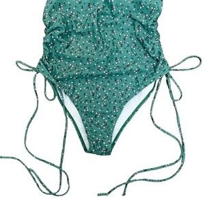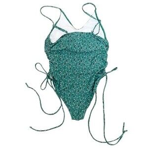 Romwe Green & White Floral Print Side Drawstring One Piece Swimsuit Size Large