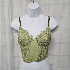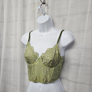 Romwe Green Y2K Babydoll Tank Bra Lace Mesh Whimsigoth Fairy Underwire S