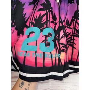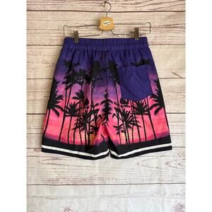 Romwe Palm Tree Purple and Pink Swim Trunks Sz S