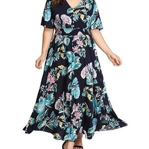 Romwe Plus Size Floral Print Flowy Maxi Dress