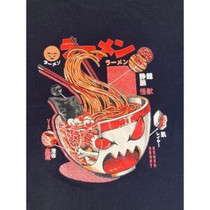 FEATURES/ACCENTS: Black short sleeved t-shirt, Ramen graphic