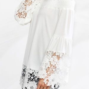White, Boho, Off-the-Shoulder