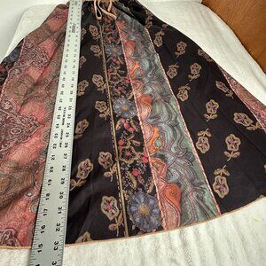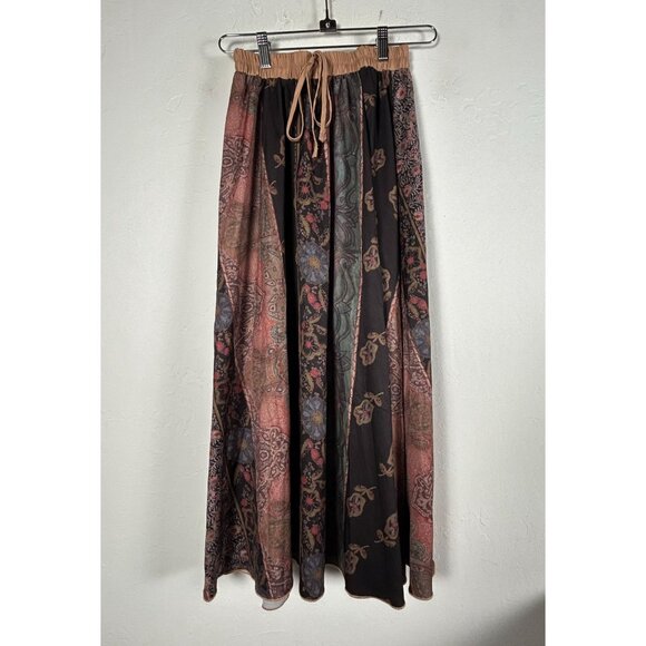 Romwe Womens Brown Pink Floral Boho Patchwork Maxi Skirt Small Elastic Waist
