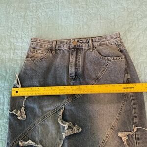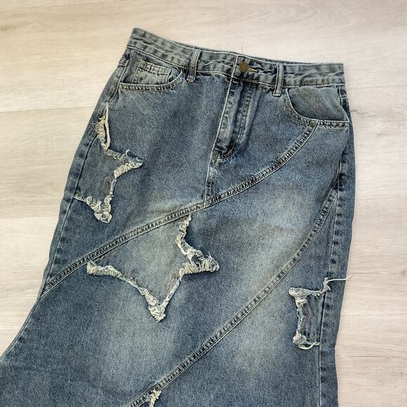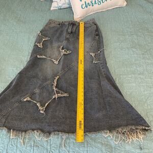 Romwe Womens Distressed Star Denim Raw Hem Maxi Skirt Grungecore Size Medium -Brand: Romwe