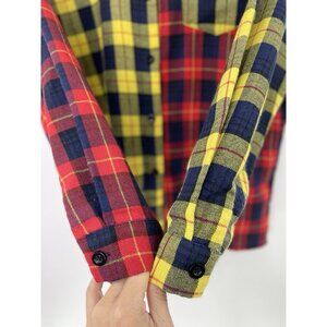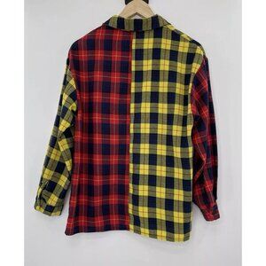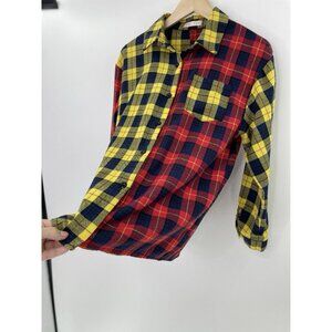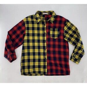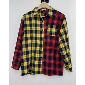 Romwe Women’s Red/Yellow Colorblock Button Down Flannel Shirt Size Small, Boho