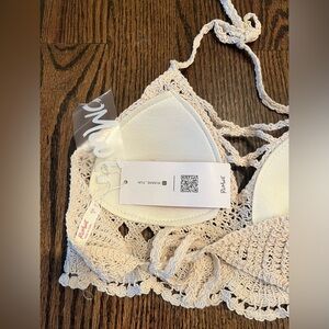 Romwe chrochet get knit top size S ivory NWT