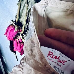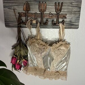 Romwe cropped contrast metallic/cream bustier with lace and mesh,