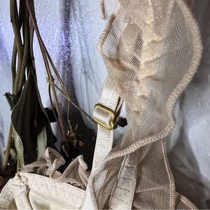 Romwe cropped metallic/cream bustier, ruffled hems, straps adjust; sz m, perfect