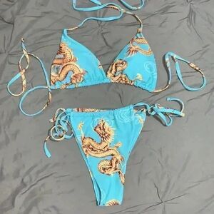 Romwe size large junior dragon swimsuit with sarong
