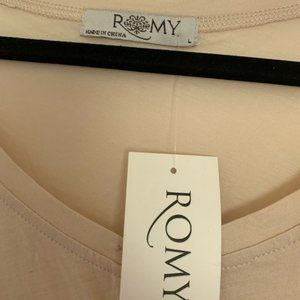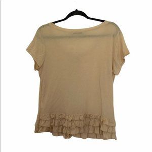 Romy | Button Front Short Sleeve Frilly Shirt | Ruffles | Tan | NWT | Large