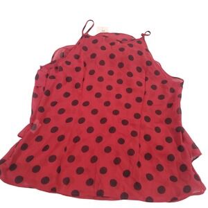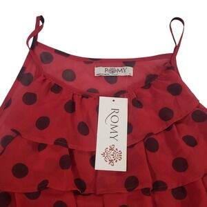 Romy Tank Top Womens Red XL Spaghetti Strap Ruffled Polka Dot Lightweight Zipper