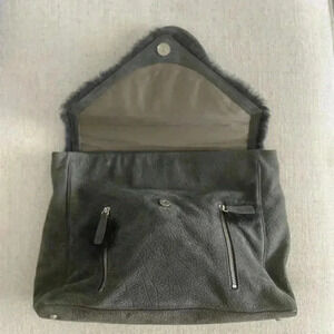 Tags RomyGold, gray leather handbag, gray fur trim, women’s bag, tote style, luxury accessory, winter fashion, statement handbag, fur accents, soft leather, chic bag, unique design, trendy accessory, versatile color, textured detail, contemporary style, sophisticated look, high-end, fashionable, cold weather accessory, casual elegance, neutral tones, spacious interior, everyday handbag, soft fur trim, quality craftsmanship, stylish tote, modern silhouette, street style, fall and winter wear, eye-catching, soft touch, functional design, fur-trimmed handbag, premium material, timeless fashion
