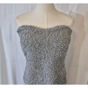 Ron Herman Womens Designer Gray Terry Cloth Strapless Mini Dress Small