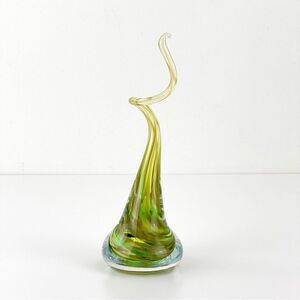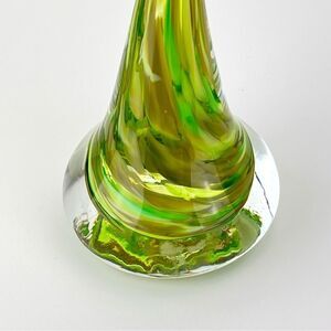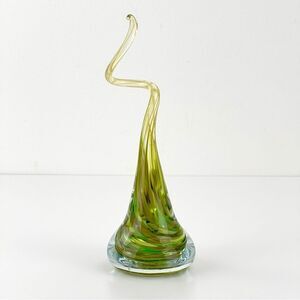 Ron Hinkle 8" Art Glass Paperweight Decor Green Swirl 2008