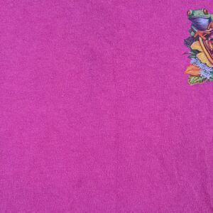 Condition: 100% Cotton basic crew neck t-shirt with graphic print. Hole on front. Blemish on front as pictured.