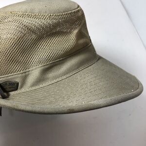 Pre owned used. A few spots on edge of bill rim. A few areas of material piling. The tan color is a darker tan. See pictures for all conditions.