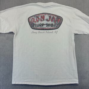 Ron Jon Surf Shop Shirt Mens Large White Long Sleeve Long Beach Island, NJ Ocean Distressed
