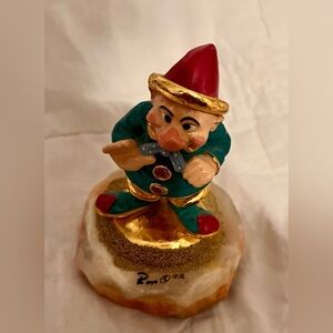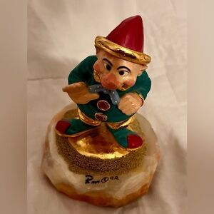 Ron Lee 1992 Signed Hi Ya Clown Dwarf Elf Hobo Dopey Marble Base Gold Paint VTG