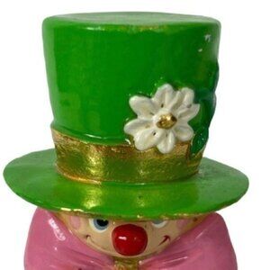 It features a leprechaun clown with a bashful expression, adding a touch of playfulness to any collection.