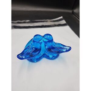 This beautiful pair of Bluebird figurines is a stunning addition to any collection. Handcrafted with exquisite care, they showcase the artistry and skill of the renowned Ron Ray studio. The vibrant blue glass and delicate design make them a captivating sight to behold. Each piece is unique, with its own etched backstamp and production style. The birds are a perfect representation of North America, with their beautiful feathers and lifelike appearance. These figurines are sure to add a touch of elegance and charm to any home decor. SKU -6-0-13