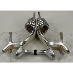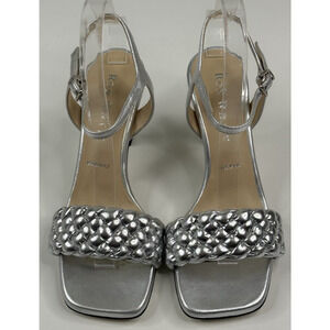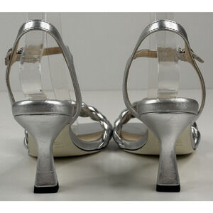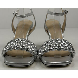 Ron White Aneesha Metallic Silver Leather Braided Ankle Strap Sandals 37.5/7 US