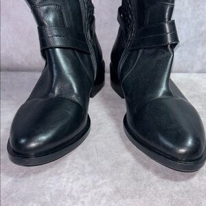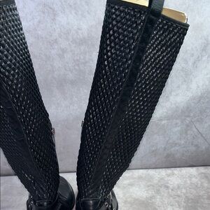 Ron White EUC Women Black Leather Knee-High Boots Sz EU 36 Quilted Cushioned