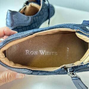 Ron White Otanya Navy Croco Embossed Leather Lace-Up Sneaker Size 38/US 7.5