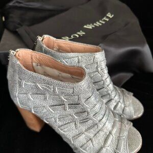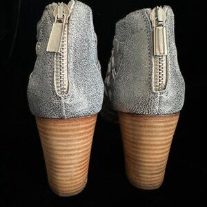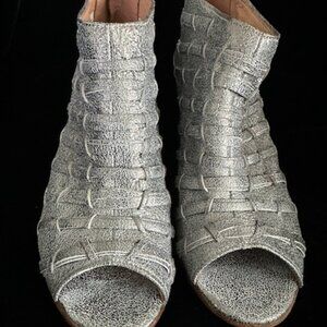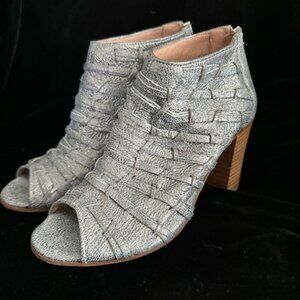 Ron White SANDRA Silver Antiqued Nappa Ribbon Weave Peep Toe Bootie Size 6