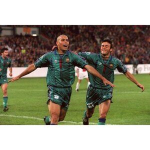 Official Ronaldo Barcelona Kappa Green Away Jersey from the 1996 - 1997 UEFA CUP FINAL.