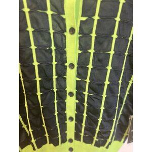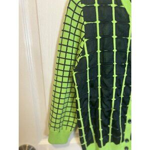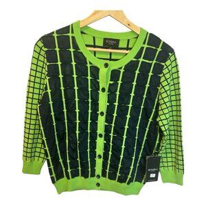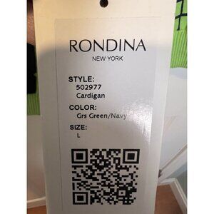 Rondina NY Knit Cardigan Size Large Green Blue Long Sleeve Crew Neck Button Up