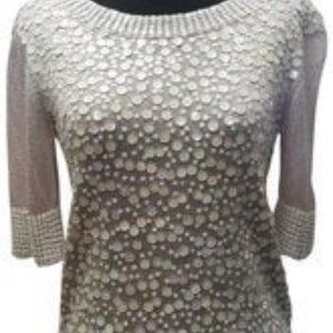 Rondina Sequin Beaded Metallic Knit Top Lavender Sz XS