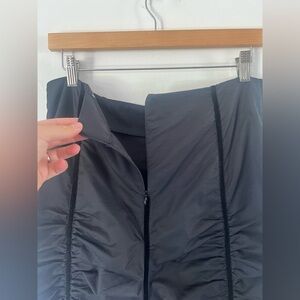 Ronen Chen Black Cotton & Velvet Striped Ruched Midi Skirt