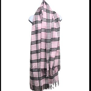 Wrap yourself in style with this elegant pink plaid scarf. Perfect for adding a touch of sophistication to any outfit.