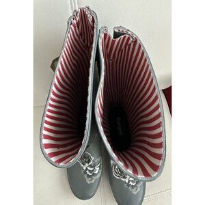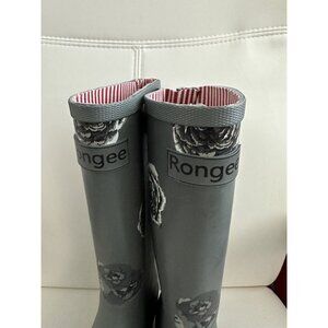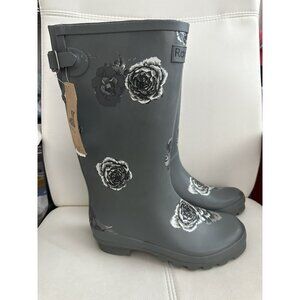 Rongee Women's Rubber Rain Boots Sz 10 Gray Rose Floral Tall Adjustable Buckle
