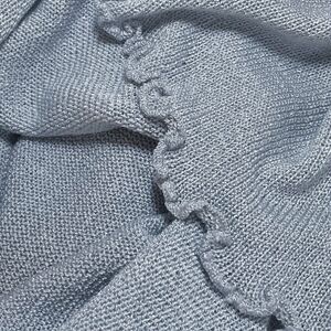 Light Blue knit .. Swing Style with Lettuce Hem ... funky love this neutral and natural - great sweater for traveling, too. Size Small but generous. 51% Cotton, 34% Acrylic, 15% Polyamide, Hand wash or Dry clean
