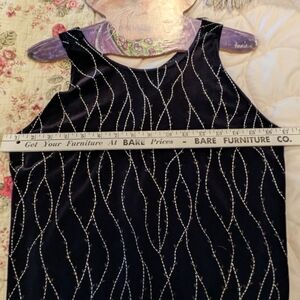 Chic black velvet maxi dress with elegant white wave embroidery. Sleeveless design, open back with criss cross straps, and back slit. Never worn, perfect condition. Perfect for evening wear.
