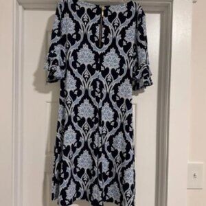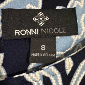 Ronni Nicole Blue & White Textured Pattern Floral Dress Size 8