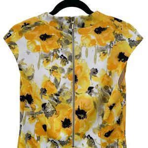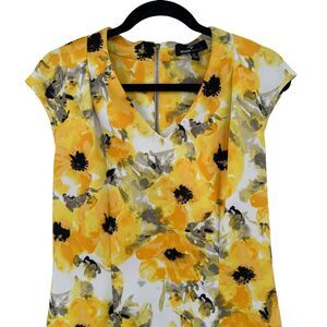 Ronni Nicole Dress 12 Sheath Knee Length Cap Sleeve Yellow Floral Summer V-Neck