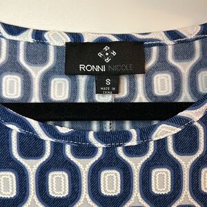 Ronni Nicole Dress Size Small Blue & White Textured Short Sleeveless Geometric