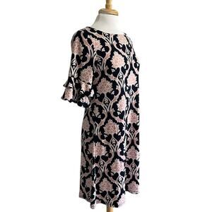 Ronni Nicole Dress Sz 8 Sheath Blue Pink Textured Batik Floral Flutter Sleeve