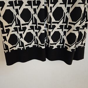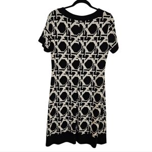 Ronni Nicole Scoop Neck Geometric Black/Cream Print Sheath Stretch Dress size 12